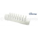 Air manifolds are generally small in diameter with multiple 3/8" connectors which feed air to the 3/8" connections on the back of water jets. They can sometimes be found glued directly into the underside of air controllers.