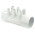 These 3 sections all contain hot tub water manifolds. The 1-1/2" and 2" sections contain traditional looking spa manifolds. There are also another breed of manifold which we have struggled to give a good name, so we have called them (what they look like) the bottom of Spaceships.