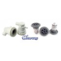 Waterway are by far the largest and well known manufacturer of hot tub associated plastics. We estimate that 90% of all spas manufactured use their components. This section contains all of the bodies from their Whirlpool jet family.